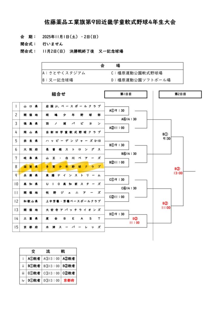 佐藤薬品工業旗第9回近畿学童軟式野球大会🔥 2025年10月28日 最終更新日時 : 2025年10月28日 多賀少年野球クラブ 最高の仲間たちと、4年生最高の舞台で試合ができる幸せ! 全部出し切って、思いっきり野球しよう🔥🔥🔥